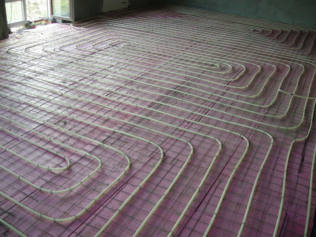 Что такое «теплый пол»? В классическом виде система «водяной теплый пол» представляет собой слой бетона со встроенными в него змеевиками нагревательных труб. Этот бетонный пласт должен быть хорошо изолирован от теплопотерь внизу и в стороны для наименьшей потери тепла.